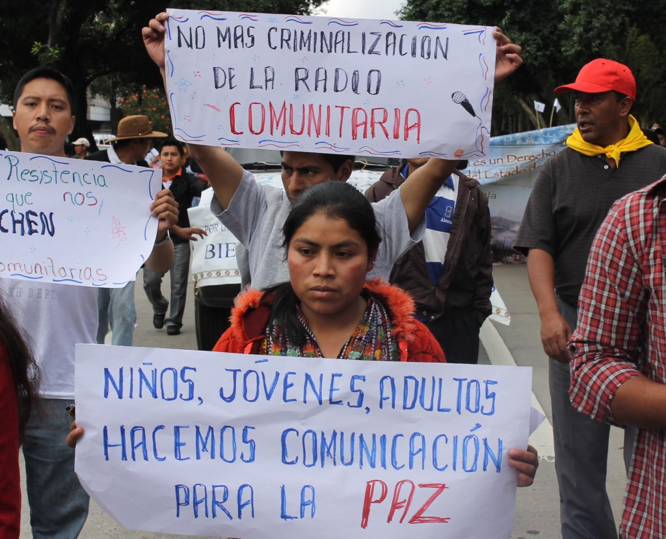 On October 12th the government of Guatemala commemorates the Dia de la Hispanidad, the day Colombus arrived to the Americas. For the nation’s Indigenous Peoples, however, it’s a day of remembrance of the genocide carried out against past generations and a call to action reinstating resistance to the oppression, exclusion, and violence Indigenous Peoples have faced over a half century since Columbus’s arrival. Each year leaders of grassroots Indigenous organizations convoke a march through Guatemala City to the, past the supreme court, the congress of the republic, to the central plaza and the presidential palace, to highlight the most pressing issues for Indigenous Peoples nation-wide, including the legalization of community radio.