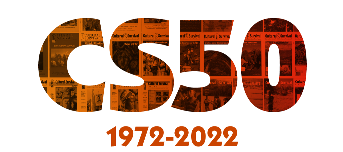 ¡El 1 de junio fue nuestro día anual de donaciones y, gracias a usted, cumplimos con nuestro desafío de $10,000 presentado por nuestra generosa donante, Ruth Perry! Hoy les escribo para desearles a todos ustedes un muy feliz 50 aniversario mientras continuamos celebrando la fundación de Cultural Survival en 1972. Este hito es compartido por muchos, con los fundadores de la organización y sus familias, socios, personal, voluntarios y nuestra comunidad a lo largo y ancho, llegamos juntos a este momento especial.