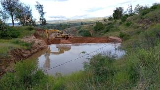 El bordo de retención de agua permite la recarga de los cuerpos de agua subterráneos con una capacidad de almacenamiento aproximada de 1600 metros cúbicos.