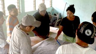 Después de muchas consultas, todos los residentes de Crique Sarco firmaron una resolución comunitaria que otorga a SATIIM la coordinación de asistencia técnica. Hemos traído personal de SANK para capacitarlos en todos los aspectos de cartografía, no sólo en cuanto a las fronteras físicas, sino en cuestiones sobre cómo la tierra es utilizada por los individuos y la comunidad en su conjunto de acuerdo con sus prácticas y creencias culturales. Sin embargo, rápidamente quedó claro que el modelo de SANK no podía ser copiado y pegado literalmente sobre nuestra realidad. Recopilamos información y conocimiento de comunidades de todo el mundo, como la Alianza de Pueblos Indígenas del Archipiélago (Indonesia), quienes están construyendo, como nosotros, un registro de tierras en previsión de la legislación nacional. Nuestras investigaciones nos llevan a Elinor Ostrom, ganadora del Premio Nobel cuyo "Gobierno de lo Común" delinea los pasos vitales más allá de la cartografía. Aprender la tecnología GPS no es suficiente. Los mapas son sólo el comienzo, no el objetivo final. Sus "Ocho Principios para la Gestión de lo Común" abordan las decisiones esenciales de la comunidad sobre las normas culturales que gobiernan la tierra comunal, junto con la supervisión y cumplimiento de la comunidad.