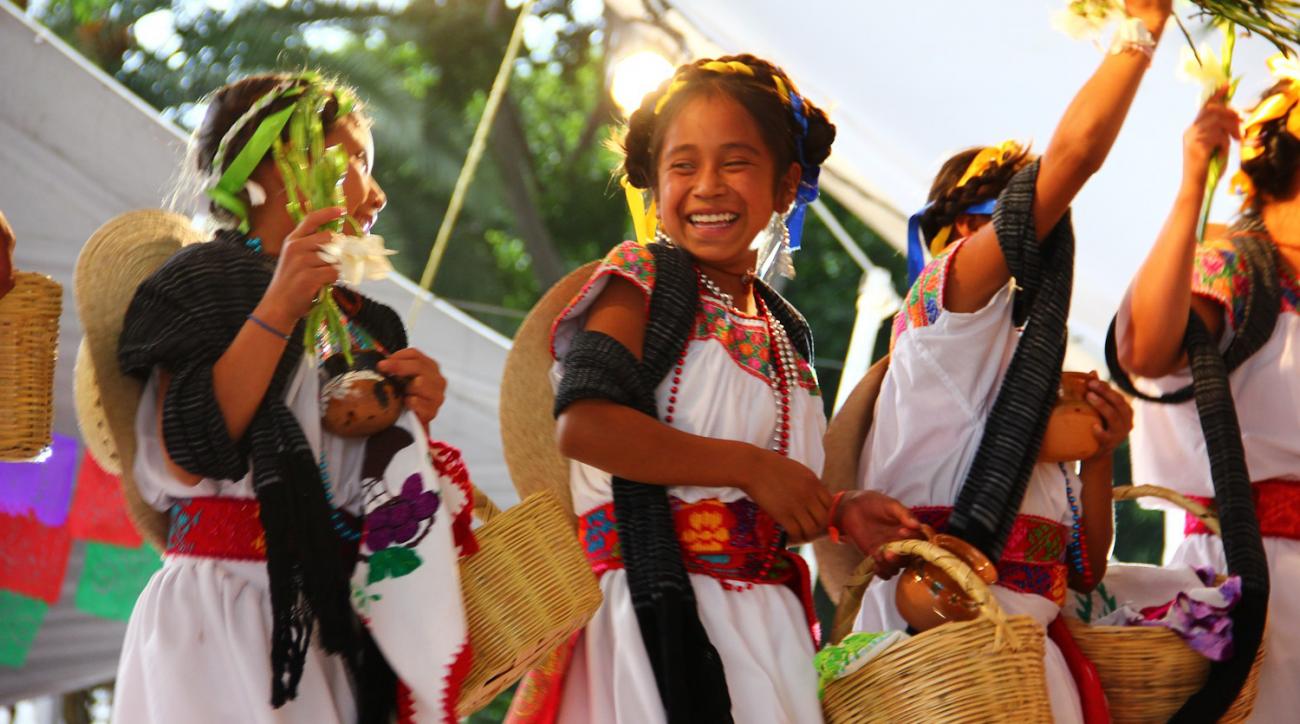Foto: Niñas pertenecientes a la etnia Nahua del estado de Puebla, México ejecutan una danza tradicional, Puebla, Puebla, México. Por Fernando Rosales.