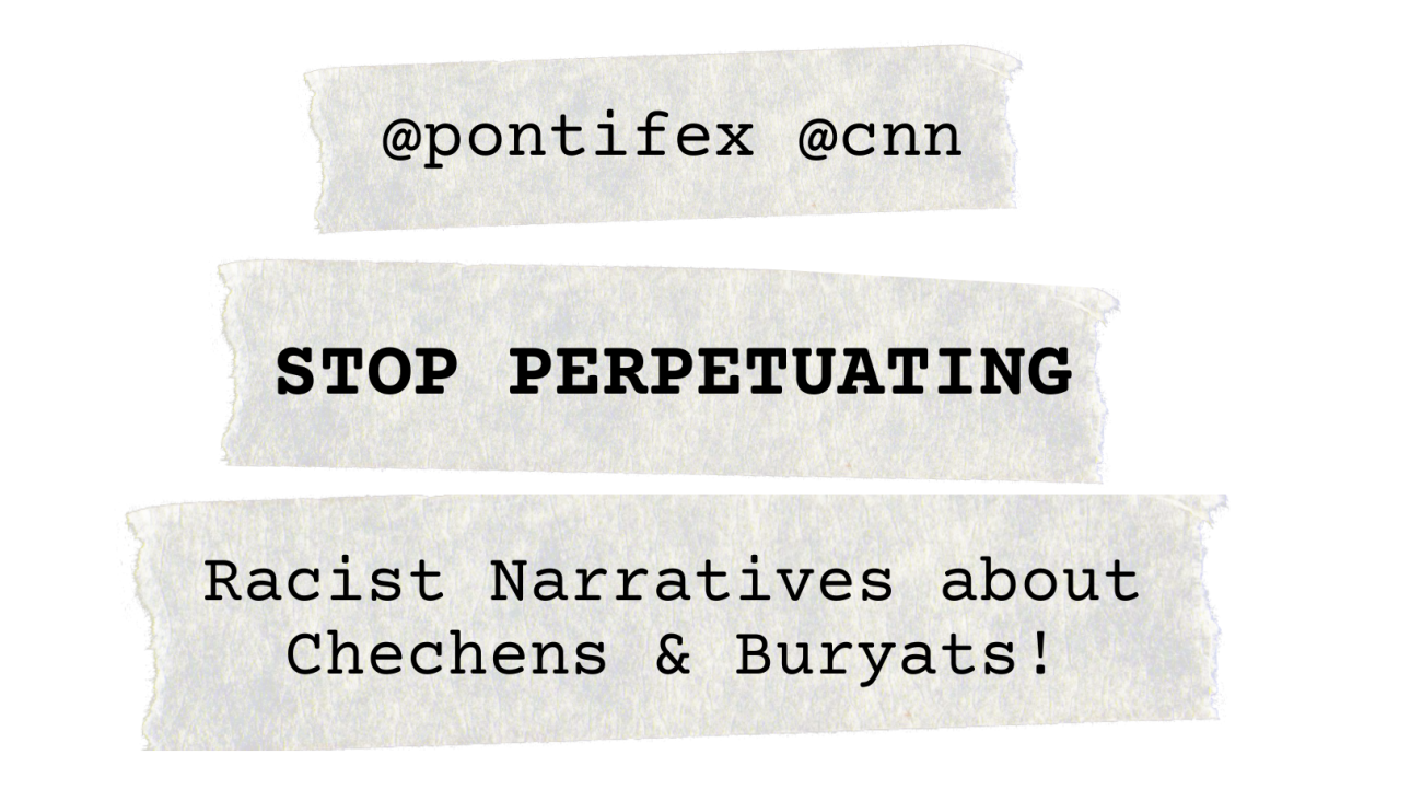 Demand the Pope apologize to Chechens and Buryats for perpetuating colonial stereotypes. Whole Peoples should not be vilified and blamed for the actions of the Russian State.