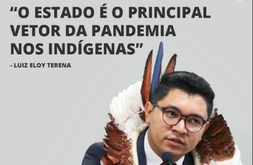 Photo: "The Brazilian State is the main vector of the pandemic among Indigenous Peoples in Brazil." Image courtesy of Eloy Terena's Instagram account.