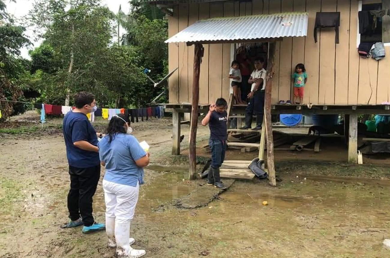 Photo: CONAIE and partners carry out medical brigade in the community of San Carlos after the oil spill on April 7, 2020. Via Facebook.
