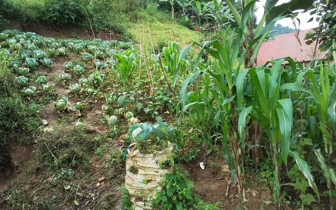 A Batwa community garden with mixed crops, promoting food diversity and resilience.
