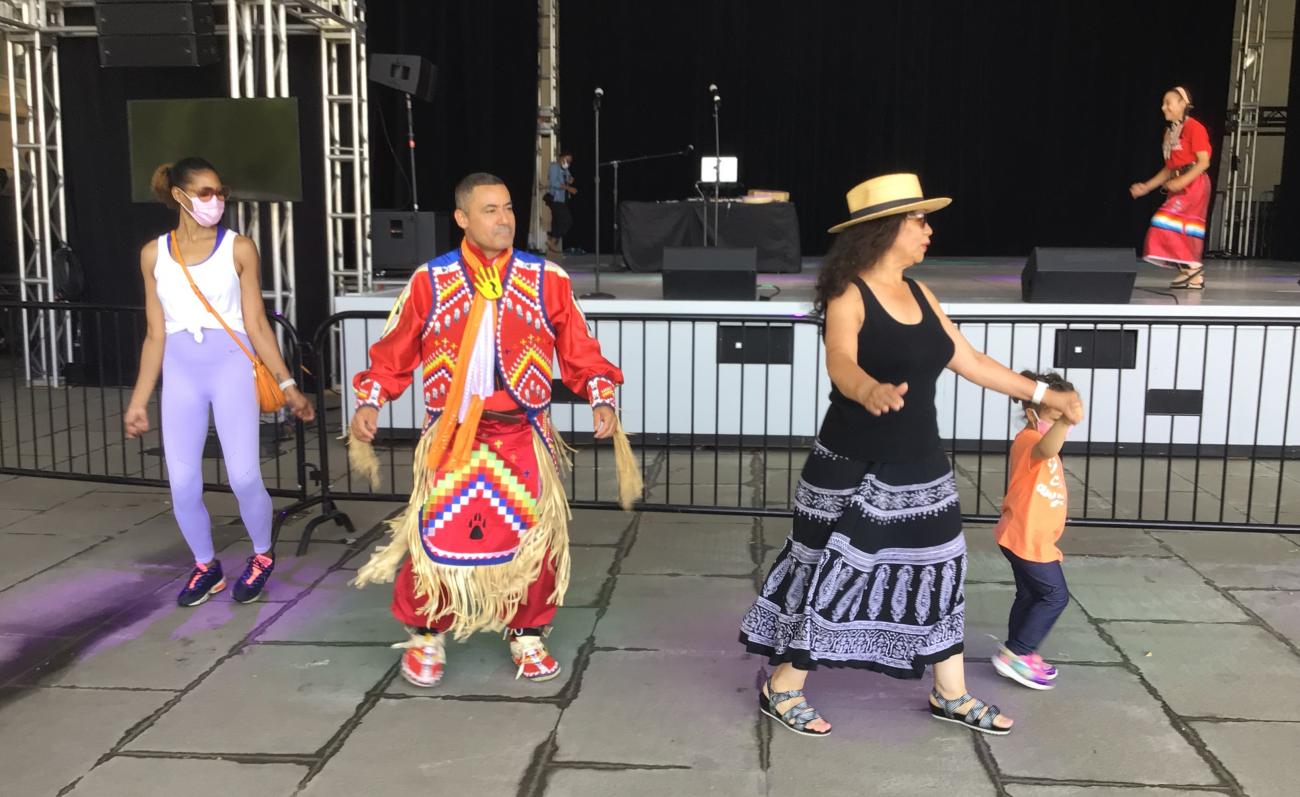 Wingapo means “welcome cherished friend” in the Algonquin language and is a good way to describe the events that took place at the Kennedy Center in Washington D.C., on July 8-10, 2021. Wingapo! Welcome to the Native American Dance Circle featured live performances and multigenerational interactive programs showcasing Indigenous cultures through music, film, dance, storytelling, and an artists market. Curated by Rose Powhatan (Pamunkey and Tauxenent), Co-founder and Director of the Powhatan Museum of Indigenous Arts and Culture, the vibes between the performers, audience participants, and artists were indeed welcoming. Despite rain cancellations, the first two days, the July 10th day, and evening activities at the outdoor REACH arena were so dynamic and energizing because of all the live performances that people forgot about their rainy day disappointments.