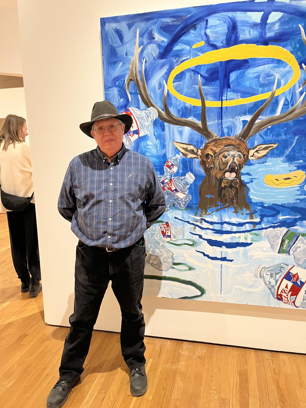 Phoebe Farris: How does your painting “Drowning Elk,” on display at Zimmerli, reflect Jaune Quick-to-See Smith’s theme of “Here, Now & Always”?