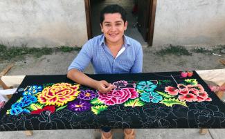 Elvis Guerra: I am a lawyer. I am also a poet, a translator, and I work in textiles. I have a team of women who work with me producing traditional clothing of Juchitán, which is a Binizá (Zapotec) town that is located in southern Mexico with just over 100,000 inhabitants. Most of us speak Diidxazá (Zapotec) and are practically bilingual. Our people are characterized by our social struggles and the defense of our rights. During the 1866 French invasion, and in 1974, when the movement of the COCEI (Workers, Peasant, Student, Isthmus Coalition) arose to end the monopoly of the former Institutional Revolutionary Party, it was women who spoke out and took up arms to defend the people. There is no doubt a fundamental role of women in our culture.