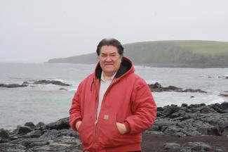 — Patrick Pletnikoff is a Unangan (Aleut) born and raised at St. George Island. As a young man he harvested fur seal with his father. He also fished commercially, harvesting halibut throughout the Bering Sea. He is presently the mayor of the city of St. George.