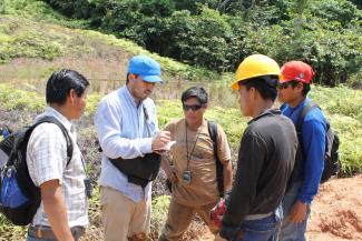 Cultural Survival’s visit coincided with that of E-Tech International, an environmental technical consulting nonprofit that works largely with Indigenous communities. Ricardo Segovia, an E-Tech environmental engineer, was there to train the monitors to gather precise scientific data on each contaminated site. Chocooj Coc had the opportunity to speak with many of the community monitors, as well as the apus (traditional leaders), as the group hiked through the forest and carefully took notes on sites of extensive oil contamination. She observed that “the oil company does not care about the damage it is causing to the people who live in the area, much less does it consult the communities about whether or not they want the company there. The company worries solely about how much it can earn. They do not use appropriate techniques to avoid contamination of the ecosystem, which is why our Indigenous brothers and sisters now suffer the consequences. Agricultural production of local foods like plantain, yucca, potatoes, and papaya has decreased, as plants no longer bear as healthy or as much fruit as before. This has a major effect since these are families’ principal food sources.”