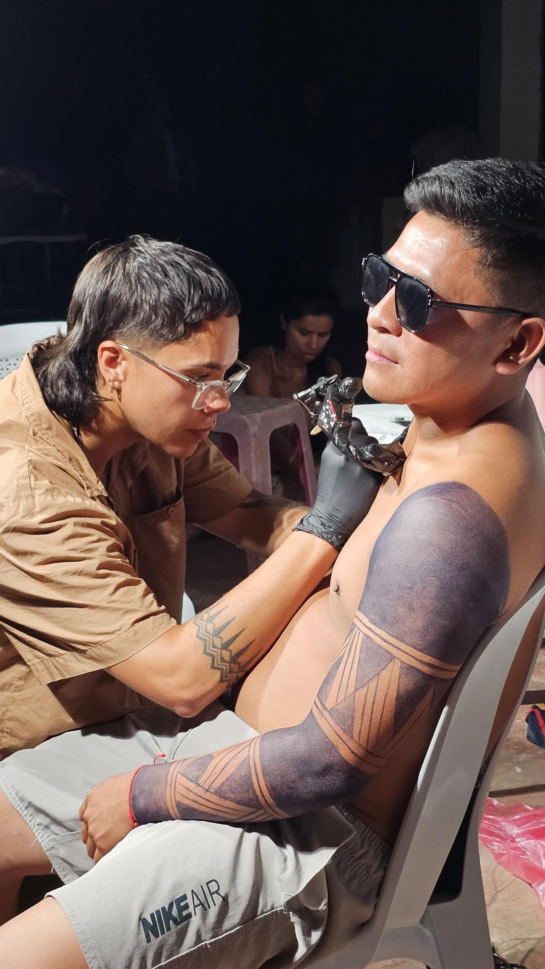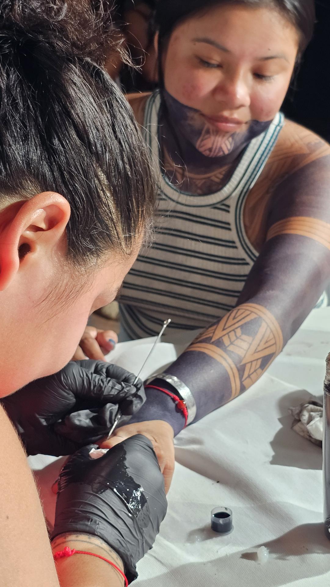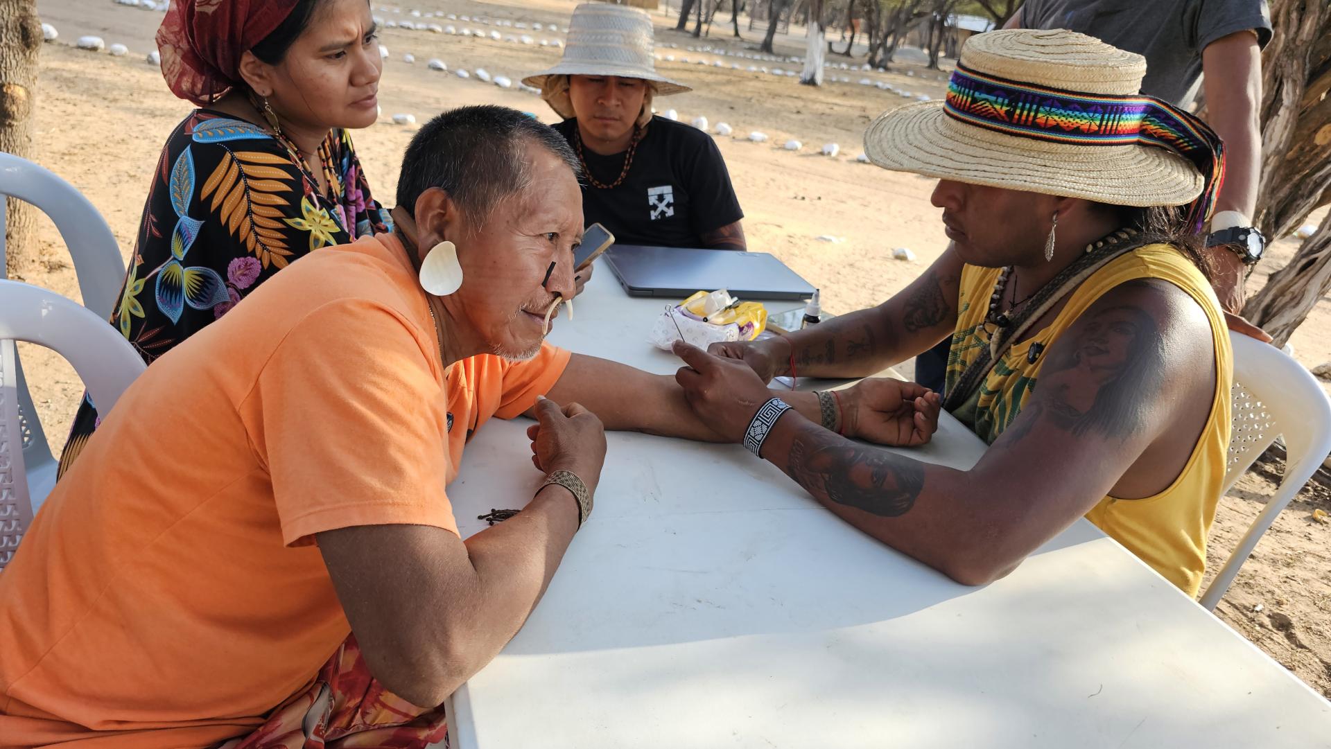 Participants from the Matis, Inuit, Emberá, Maori, Nasa, and Kichwa Peoples came together to share the journeys undertaken by their communities to reawaken the practice of tattooing and the meaning and impact it has had on reawakening these elements of their Peoples’ ways. Each member shared the meaning of tattooing in their respective communities, describing its role within their cultural context and the efforts made to reawaken or strengthen the art. Discussions were held about how the Wayuu wanted to navigate this awakening of their ancestral practice. Among the questions considered were whether they would only tattoo Wayuu and other Indigenous Peoples, or if they