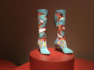 Boots, 2013–14. Glass beads on boots by Jamie Okuma (Luiseño/ ShoshoneBannock) designed by Christian Louboutin. Photo by Walter Silver/Peabody Essex Museum.
