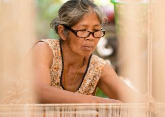 The Radical Grandmas entered the scene in 2016 when one of the grandmas, Ranong Kongsaen, began a conversation with U.S. allies about the role of foreign support in their anti-mine organizing efforts. The idea for the collective grew out of a collaboration between the radical grandmas and a group of women from the U.S. who were introduced to Na Nong Bong as undergraduate students on a study abroad program focused on human rights and the environment. Ranong suggested that the women could sell the scarves that they were weaving on the international market to help generate extra income for the weavers and further share the story of their anti-mining efforts. From there, the Radical Grandma Collective was born into a community-driven project in which the grandmas set their prices and their U.S. counterparts work to share the community’s story and help sell the items.