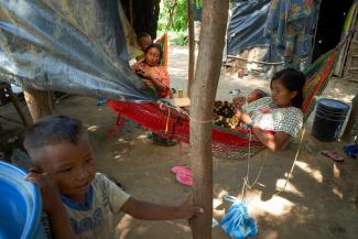 Along with Angela, more than 40 families came, numbering almost 200 people including children, elderly, and pregnant women, who, in search of better living conditions, now share this small space of about 2 square kilometers. Their places of origin are Calie, Caujarito, and La Frontera communities that are a little less than 8 kilometers away on the Venezuelan side of the border. Their goal after emigrating is survival and finding better living conditions than they faced in their communities of origins where armed forces and military groups imposed their laws to strip Indigenous Peoples of their territories.