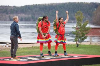 After travelling more than 20,000 kilometers across 6 provinces, 1 territory, and 14 cities, James Makokis (Cree) and Anthony Johnson (Navajo/Diné) are the first Indigenous, Two-Spirit couple to win The Amazing Race Canada. Their appearance on the reality television competition series that features teams in a grueling race across Canada and the world served as an opportunity to confront stereotypes, homophobia, ignorance, and racism, and raise awareness of issues faced by Indigenous Peoples in Canada and the United States. Makokis and Johnson Indigenized the race starting from their team name, Team Ahkameyimok (in Cree: “Don’t give up, keep going, use whatever you have to get something done.”) Their team motto was also Ahkameyimok! “This is a phrase our elders use to encourage us to do our best and keep going no matter how difficult a situation may be. It’s also fun to say,” they explain.