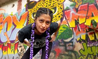 Monzón collaborated with Gabriela Bolten, a musician who belongs to a younger generation of rappers in Guatemala. Although she has not performed live recently due to the pandemic, Monzón considers herself an introspective digital artist. “I like to write and make music and rather enjoy uploading my music to Soundcloud so that people can listen to it online and broadcast it. It is important to me to wear my Mayan clothing when I rap, so that Indigenous Peoples see that there are Maya women who do things and we can break stereotypes. I want to continue to rap, and in the future would like to record an album, continue taking photographs, and practice dance, circus, theater and all those disciplines that involve the body and its movement.”