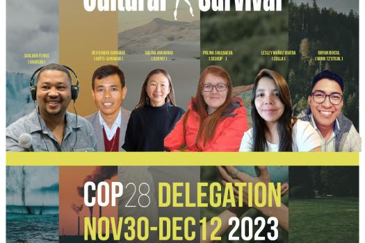 Cultural Survival envisions a future that respects and honors Indigenous Peoples' inherent rights and dynamic cultures, deeply and richly interwoven in lands, languages, spiritual traditions, and artistic expression, rooted in self-determination and self-governance.