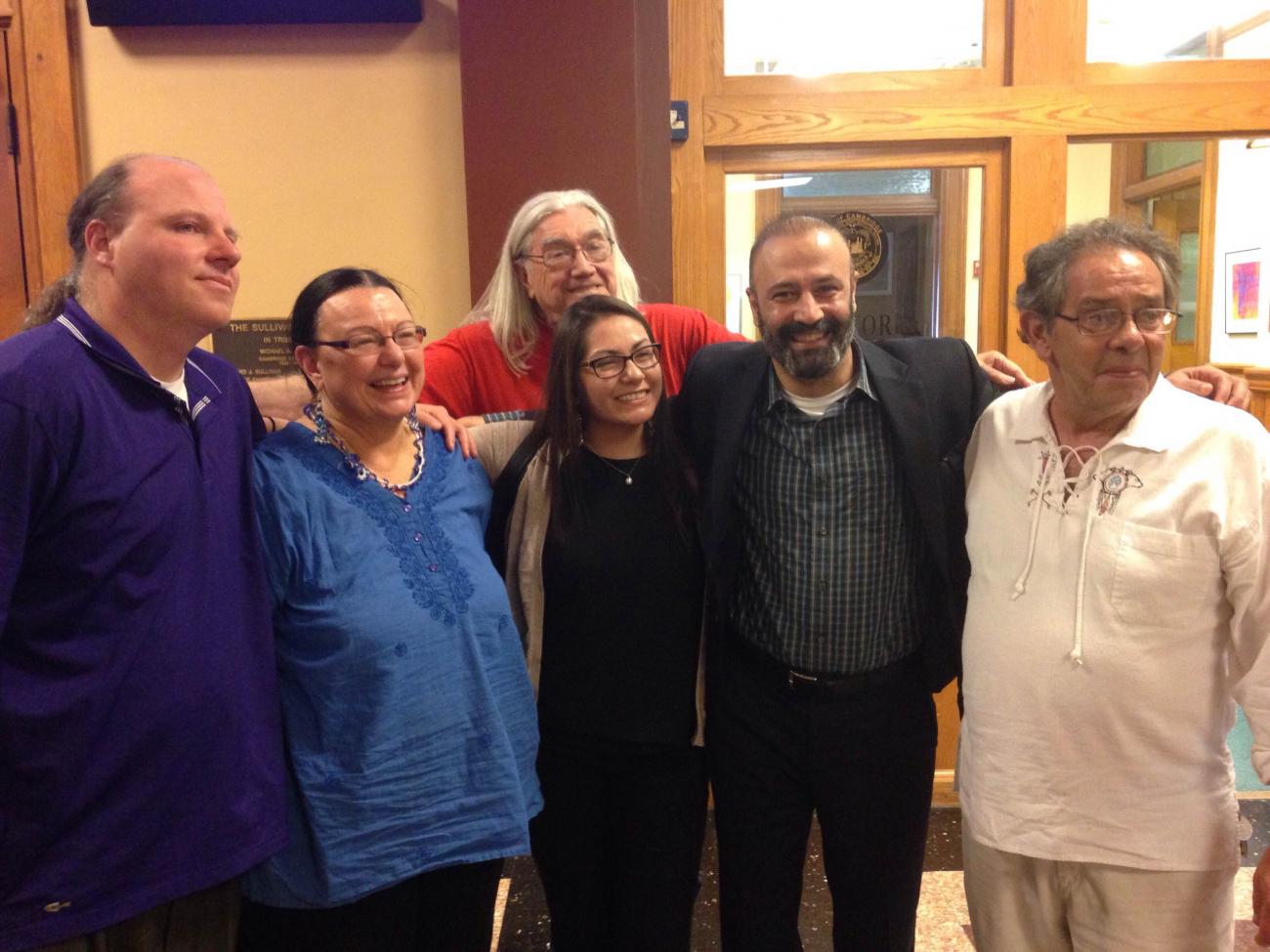 Indigenous community activists celebrate the win outside of Cambridge City Hall