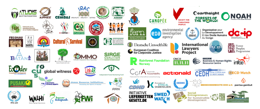 Muchos de los actores que invaden nuestras tierras y bosques, así como aquellos que financian o compran materias primas o productos hechos con estas, tienen conexiones directas e indirectas con los mercados, empresas e instituciones financieras de la UE. Los actores corporativos de la UE engrasan las ruedas de las cadenas de suministro globales que conectan nuestras tierras, hogares y medio ambiente con la vida y las prácticas diarias de los ciudadanos y consumidores de la UE. Los derechos humanos amenazados por las actividades empresariales, comerciales y financieras de la UE incluyen el derecho colectivo como pueblos a la autodeterminación, y a las tierras, territorios y recursos naturales, y el derecho a cultura, vida y seguridad de las personas, no discriminación, agua, comida y medio ambiente sano.