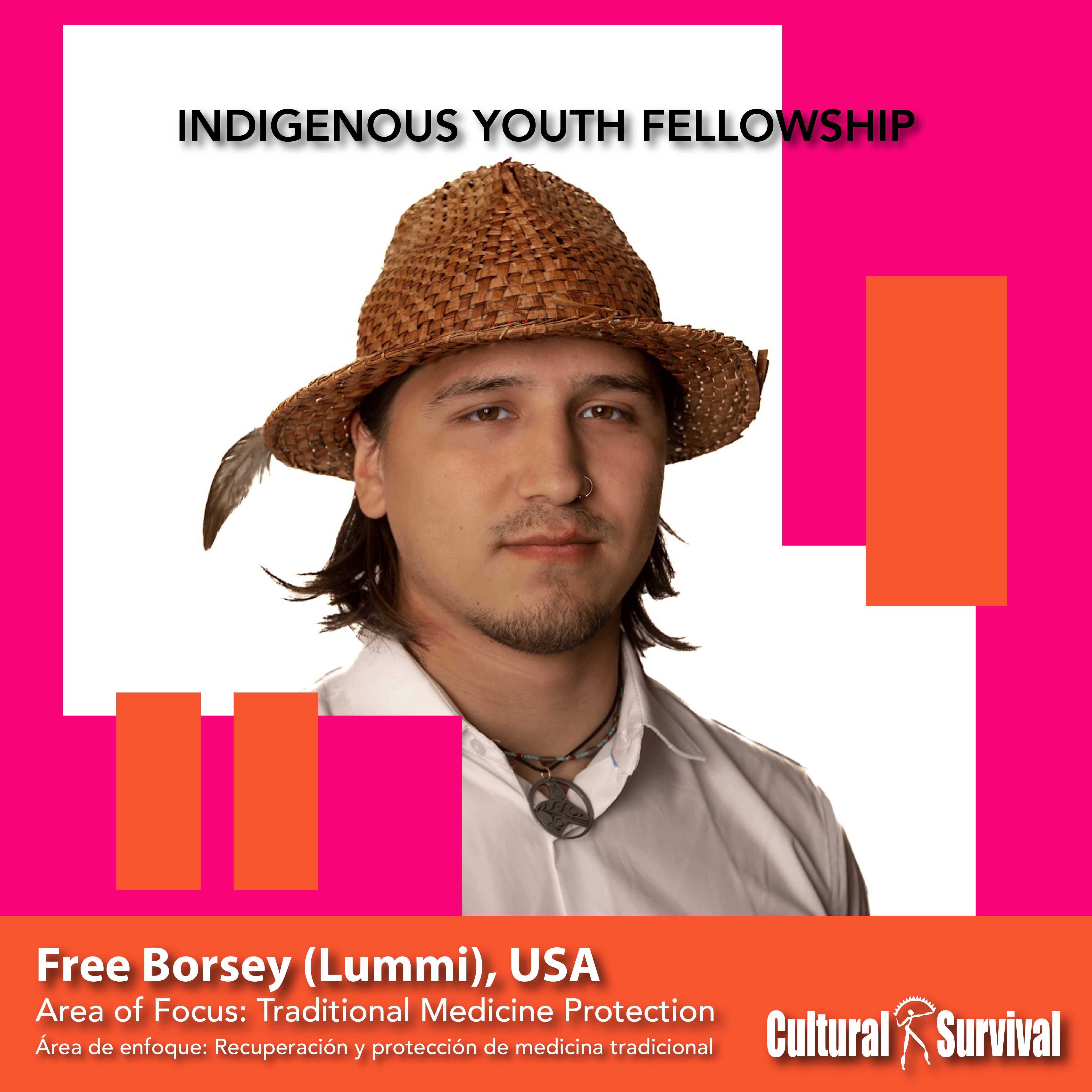 Free Borsey, tradicionalmente llamado Tsuxwilum, es Lhaq’temish de la Nación Lummi y tiene descendencia de las Primeras Naciones de We Wai Kai de Cape Mudge Columbia Britanica de Canadá. Free es miembro del Podcast de Jóvenes e Indígenas (YAI) que utiliza su plataforma para informar a su audiencia sobre Indigeneidad, cuestiones climáticas, cuestiones nativas tanto pasadas como presentes para educar al público en general sobre lo que es ser Indígena.