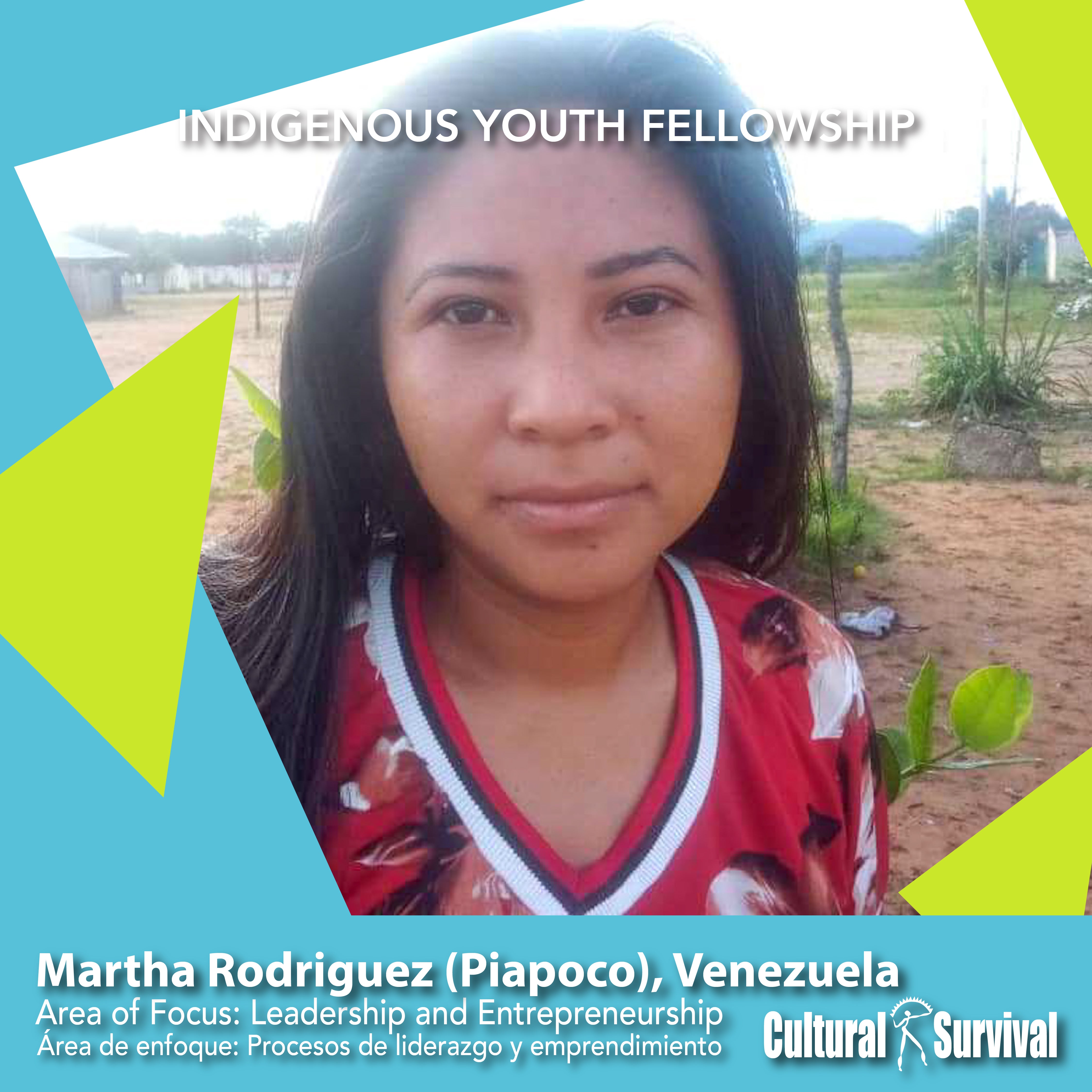 Martha Rodrigquez nació en Puerto Ayacucho y pertenece al pueblo Indígena Piapoco. Vive en San José de Galipero del estado Amazona, una comunidad fundada hace más de 25 años por sus abuelos. Rodríguez es un modelo a seguir y una líder natural para los niños de su comunidad, es profesora en la escuela primaria local.