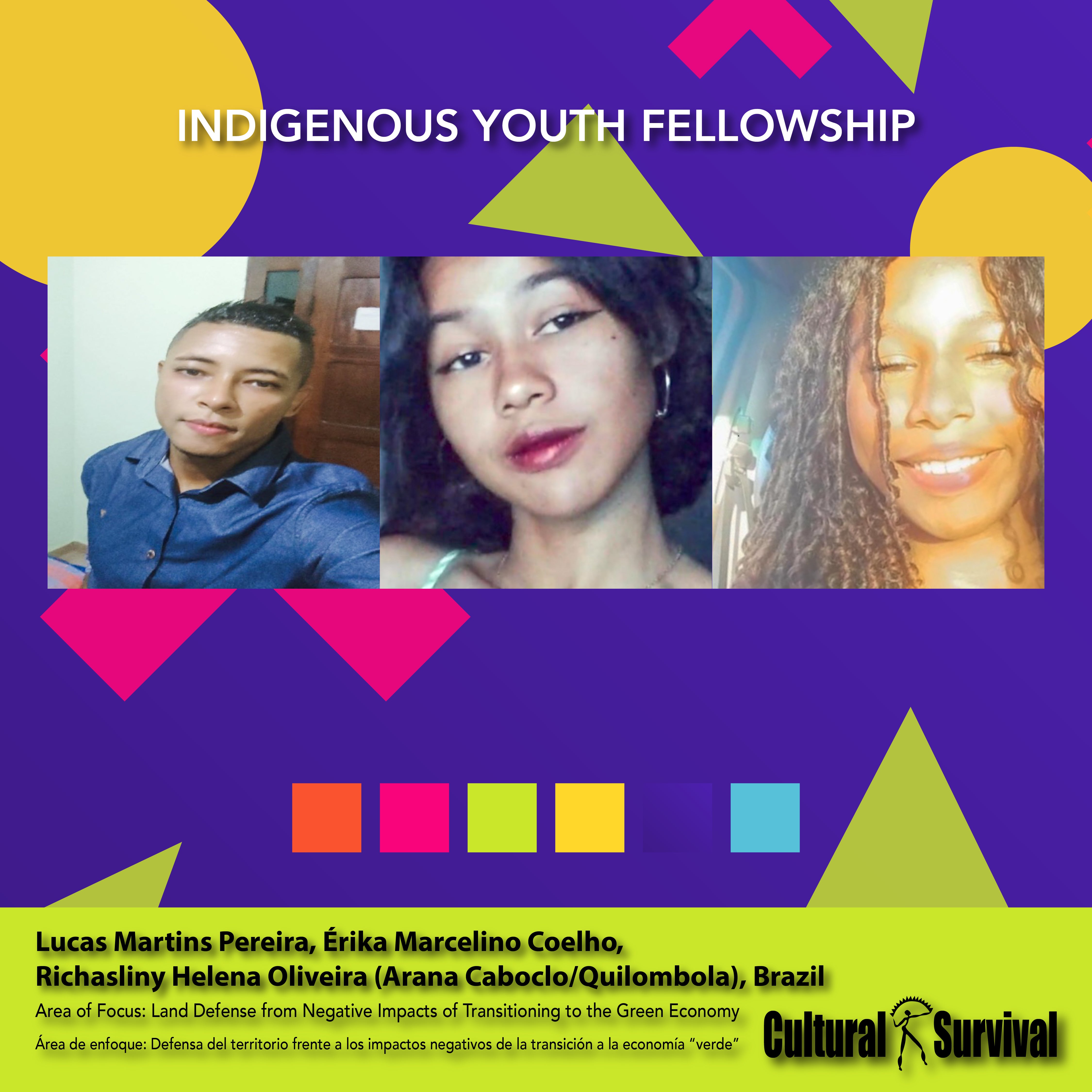 Érika Marcelino Coelho, Lucas Martins Pereira, y Richasliny Helena Oliveira son un grupo de tres jóvenes de raíces Indígenas Arana Caboclo y Quilombola que son líderes de sus comunidades abogando por la defensa y protección de sus comunidades que están siendo impactadas por la extracción del Litio. Donde han resistido a la explotación de los recursos naturales. Se trata de un grupo diverso de jóvenes que abogan por la autodeterminación de su pueblo y crean capacidades para tener más acceso a los recursos básicos.