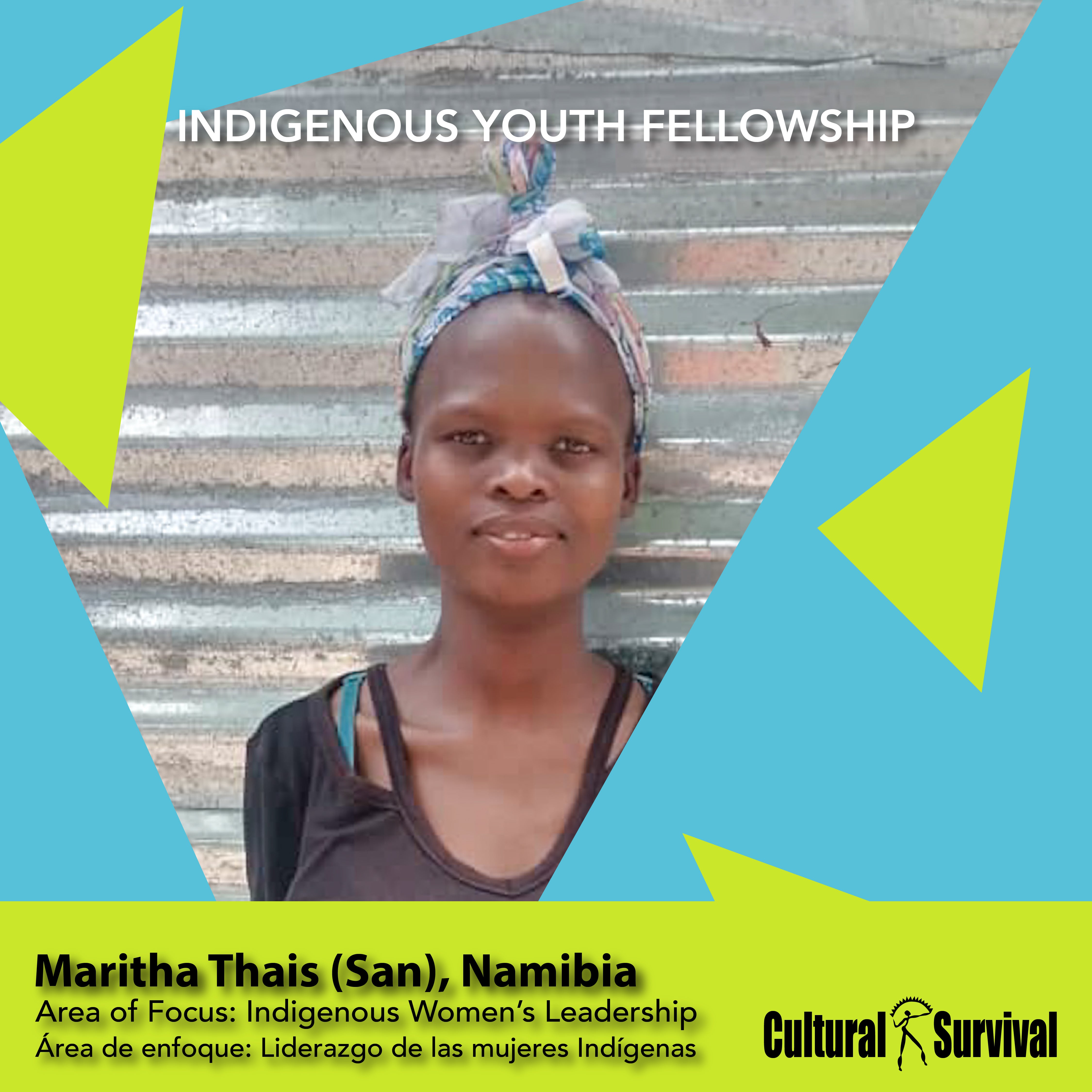 Martiha Thaises nació en un pequeño pueblo a las afueras de Grootfontein, pertenece al pueblo San, cazadores y recolectores, y le gusta leer y cantar. Fue seleccionada para participar en debates nacionales de inglés, representando a su escuela.