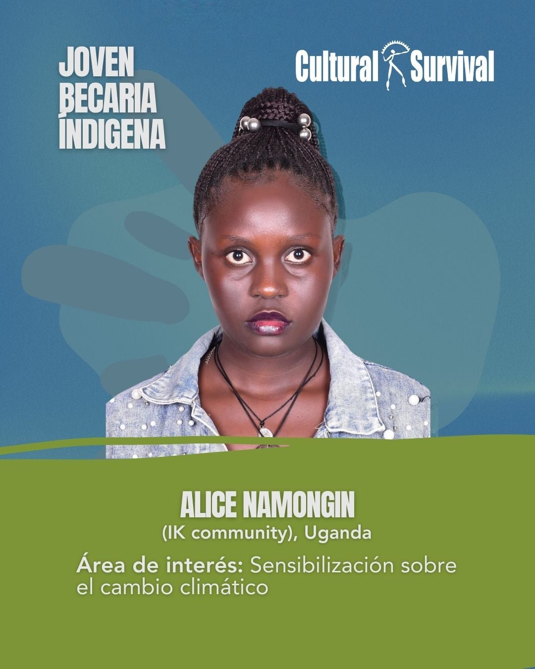 Alice Namongin es natural de la subregión de Karamoja, en Uganda, y acaba de licenciarse en Estadística Empresarial por la Universidad de Makerere. A lo largo de su carrera académica y profesional, se ha centrado en la investigación, la colaboración y la defensa para promover la sostenibilidad y mitigar los daños medioambientales. Ha participado en proyectos de investigación pioneros, iniciativas de participación comunitaria y campañas de promoción. Alice es una apasionada del bienestar de los jóvenes y del impacto en las comunidades, especialmente en el ámbito de la educación y el medio ambiente. Gracias a su formación multicultural y a su interés por la integración en la comunidad, ha desempeñado diversas funciones de voluntariado y liderazgo comunitario, incluidas unas prácticas en la Agencia para el Desarrollo de la Paz de Karamoja, donde participó en diálogos de paz, talleres para jóvenes y reuniones con las partes interesadas. También participó activamente en la movilización de los grupos de Karamoja para el Festival Cultural de Karamoja, una plataforma de exhibiciones culturales y promoción de la paz. Su proyecto, "Nurture Nature", pretende empoderar y elevar a los jóvenes de la subregión de Karamoja y de toda Uganda. Establecerá un programa integral que promueva la concienciación sobre el cambio climático, fomente las prácticas agrícolas sostenibles y la protección de la naturaleza, y garantice una representación inclusiva, con especial atención a la promoción de la igualdad de género y la elevación de las voces infrarrepresentadas en la búsqueda de un futuro resistente y equitativo para la comunidad.
