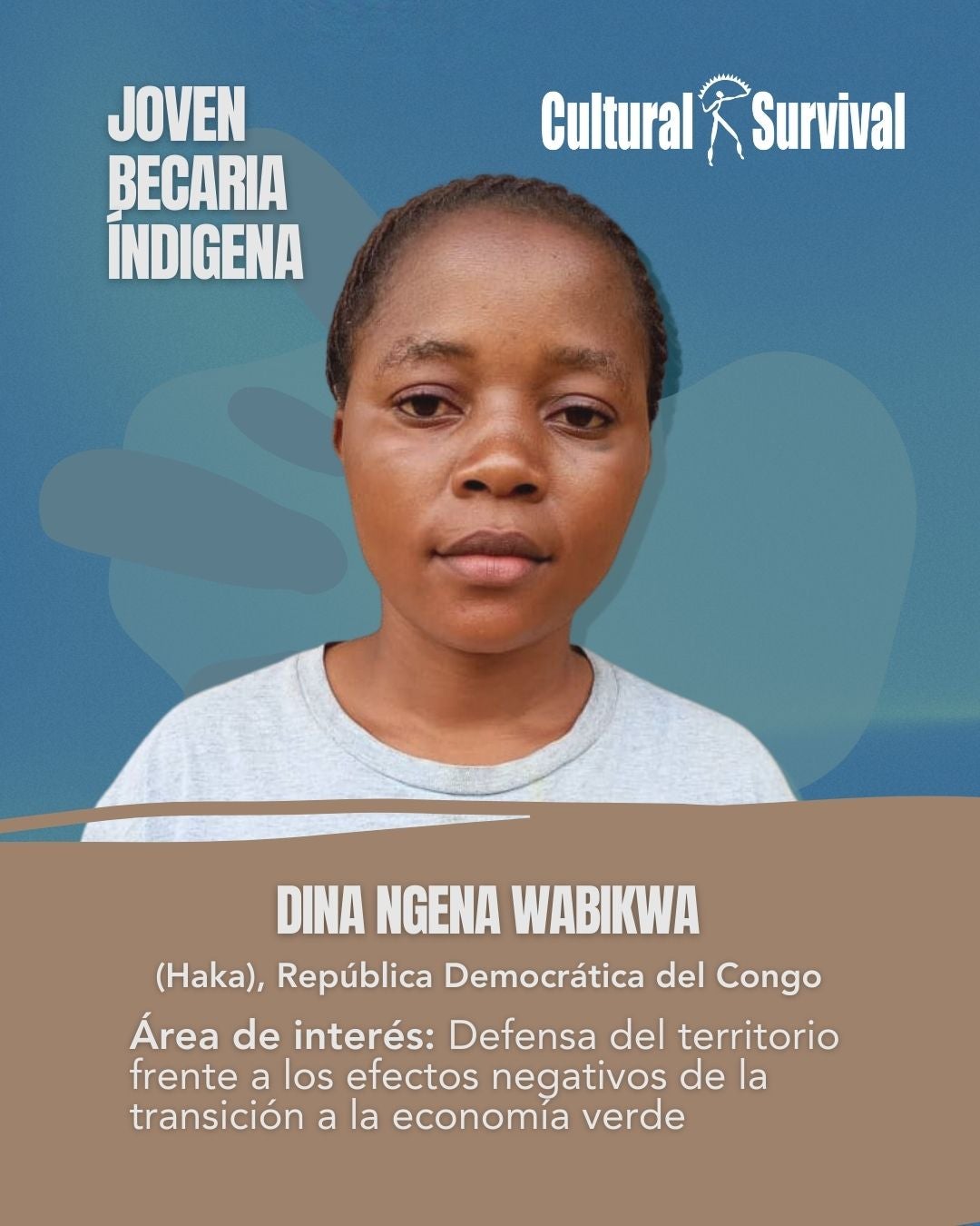 Dina Ngena Wabikwa, una mujer Congolese Pygmy Haka, es apasionada sobre la conservación de la naturaleza y trabaja como conservadora comunitaria y parajurídica. Su comunidad vive en la selva tropical de Itombwe y ha dependido de las aguas del río Elila durante miles de años. Sin embargo, la creciente demanda de minerales de transición ha propiciado el establecimiento de empresas mineras en las aldeas, con la consiguiente contaminación del río y graves consecuencias para la población. En respuesta, Dina ayuda a su comunidad a organizarse y hacer frente a este problema. Se compromete a ayudar a encontrar una solución y acceder a la justicia medioambiental para su comunidad, especialmente a la luz de la creciente contaminación causada por las empresas mineras. Su proyecto, "Projet de renforcement de la bonne gestion des eaux de la rivière Elila face à l'exploitation de minerais de transition dans le massif d'Itombwe au Sud-Kivu" (Proyecto de refuerzo de la buena gestión de las aguas del río Elila frente a la explotación de minerales de transición en el macizo de Itombwe, en Kivu del Sur), pretende combatir la contaminación del agua del río Elila causada por las explotaciones mineras.