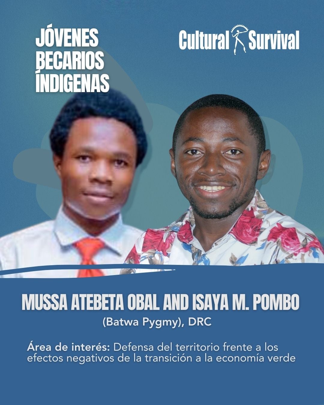 Isaya M. Pombo es un Batwa Pygmy de la ciudad de Baraka, en Sud-Kivu (RDC). Es licenciado en Tecnología de la Información por la Université Espoir Afrique de Bujumbura. Es miembro de AVID, donde se encarga de las nuevas tecnologías y la comunicación. También trabaja en la radio Voix de la Femme Autochtone, creada por AVID para amplificar las voces de las mujeres Indígenas en defensa de sus derechos y promover la cohesión social en el este del Congo. Isaya está orgulloso de sus raíces y se inspira en su identidad cultural para guiar sus acciones. Aspira a un futuro en el que los Pueblos Indígenas vivan con dignidad y respeto, utilizando la tecnología para promover la justicia social y proteger los recursos naturales.