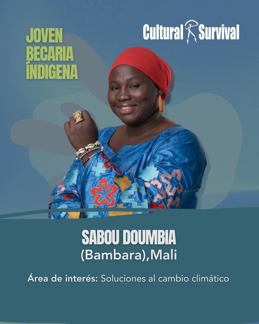 Sabou Doumbia pertenece a la comunidad Bambara. Es informática licenciada por el Institut de Science et Technologie Appliquée de Bamako. Más allá de su experiencia en informática, también es emprendedora en los campos del desarrollo comunitario, la gestión de proyectos de gestión de residuos y la economía circular. Sabou procede de una familia numerosa y creció en un barrio donde la solidaridad comunitaria influyó profundamente en su infancia, y se ha dedicado a proyectos de desarrollo económico impulsados por la comunidad. Su proyecto de beca, "Preservar Nuestras Tierras y Nuestro Futuro Bambara", pretende concienciar a las mujeres de la aldea de Siby, en particular a la comunidad Bambara, sobre las repercusiones del cambio climático en sus tierras. Su iniciativa aboga por la agricultura sostenible y el uso de fertilizantes ecológicos para promover prácticas respetuosas con el medio ambiente y adaptadas a las realidades agrícolas locales..