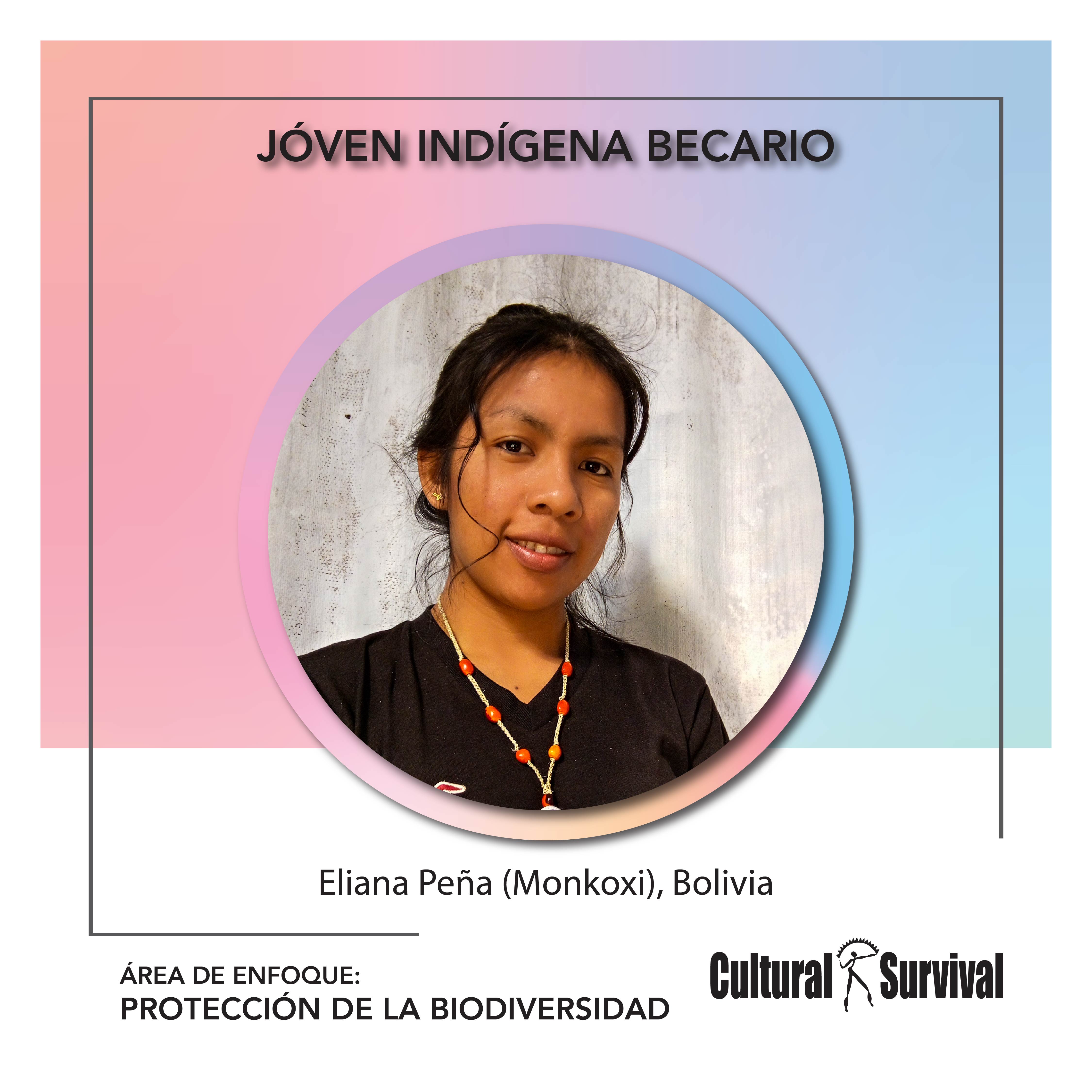 Nació en la comunidad Palmira Lomerío, provincia Ñuflo de Chávez Santa Cruz Bolivia, hija de Anacleto Peña y María Chore sus padres son Indígenas Monkoxi hablante del idioma Bésiro. En enero del 2020 ingresa a una formación técnica en gastronomía, en la Escuela el Mana en la ciudad Santa Cruz de la Sierra, culminando la formación en julio del 2021. En septiembre a diciembre del mismo año se da la oportunidad de formar parte del curso fotográfico y elaboración de un fotolibro de la cultura Monkoxi. En busca de superación en diciembre de 2021 a febrero de 2022 accede a una beca por el Fondo de Desarrollo para los Pueblos Indígenas de América Latina y el Caribe (FILAC), para el diplomado de liderazgo de las juventudes Indígenas para la incidencia colectiva, junto a la universidad indígena intercultural (UII) y la universidad Carlos Tercero de Madrid, de modo virtual.