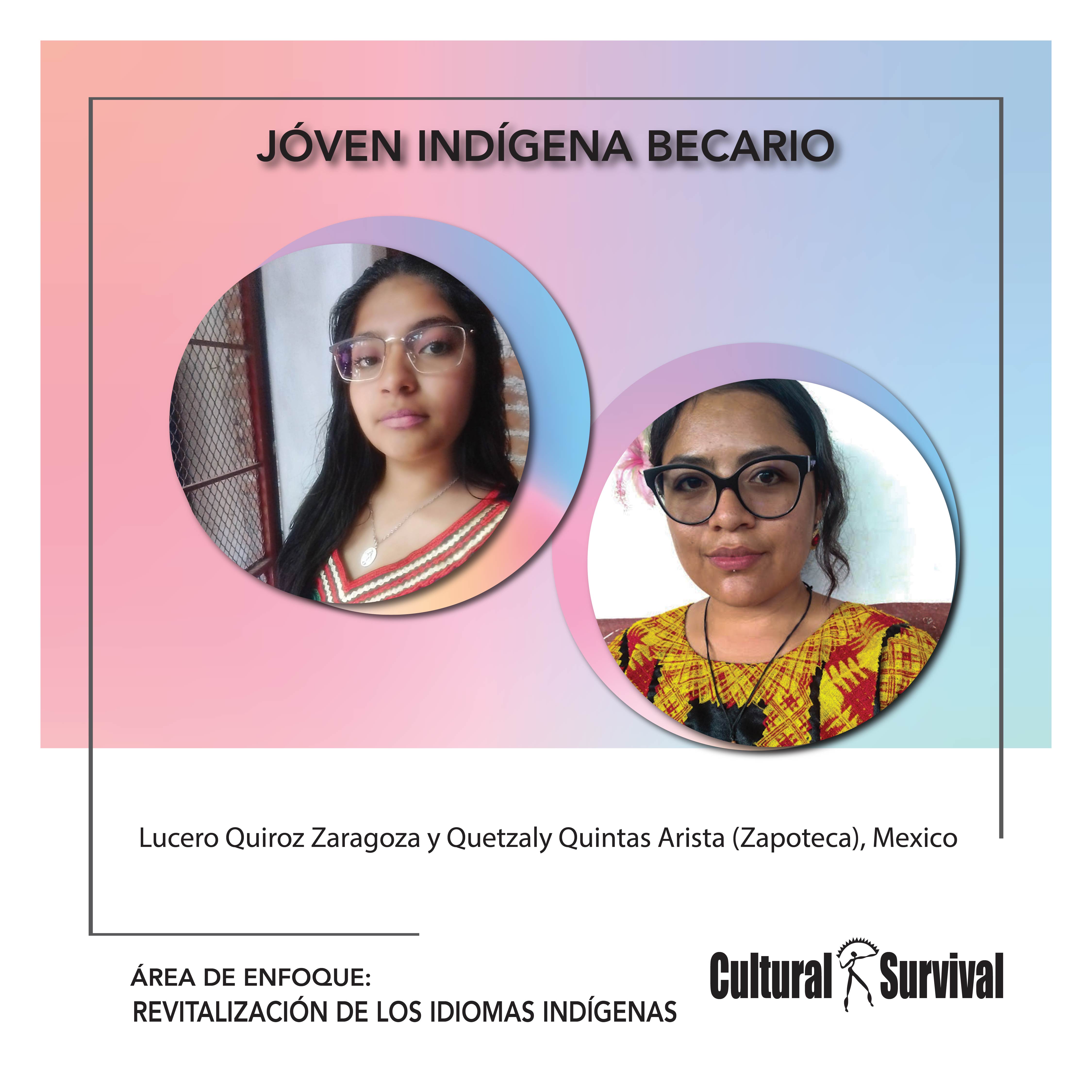 Desde muy temprana edad, Lucero Quiroz Zaragoza y Quetzaly Quintas Arista (Zapotecas) han sido apasionadas por su herencia cultural. Quetzaly estudió lingüística y ha dedicado su vida a la revitalización del idioma Dadi'idznu (Zapoteco), a través de clases de Dadi'idznu. Lucero actualmente estudia la Ingeniería en Sistemas Computacionales. Ambas aspiran a fortalecer la cultura e idioma Dadi'idznu entre la juventud Indígena.