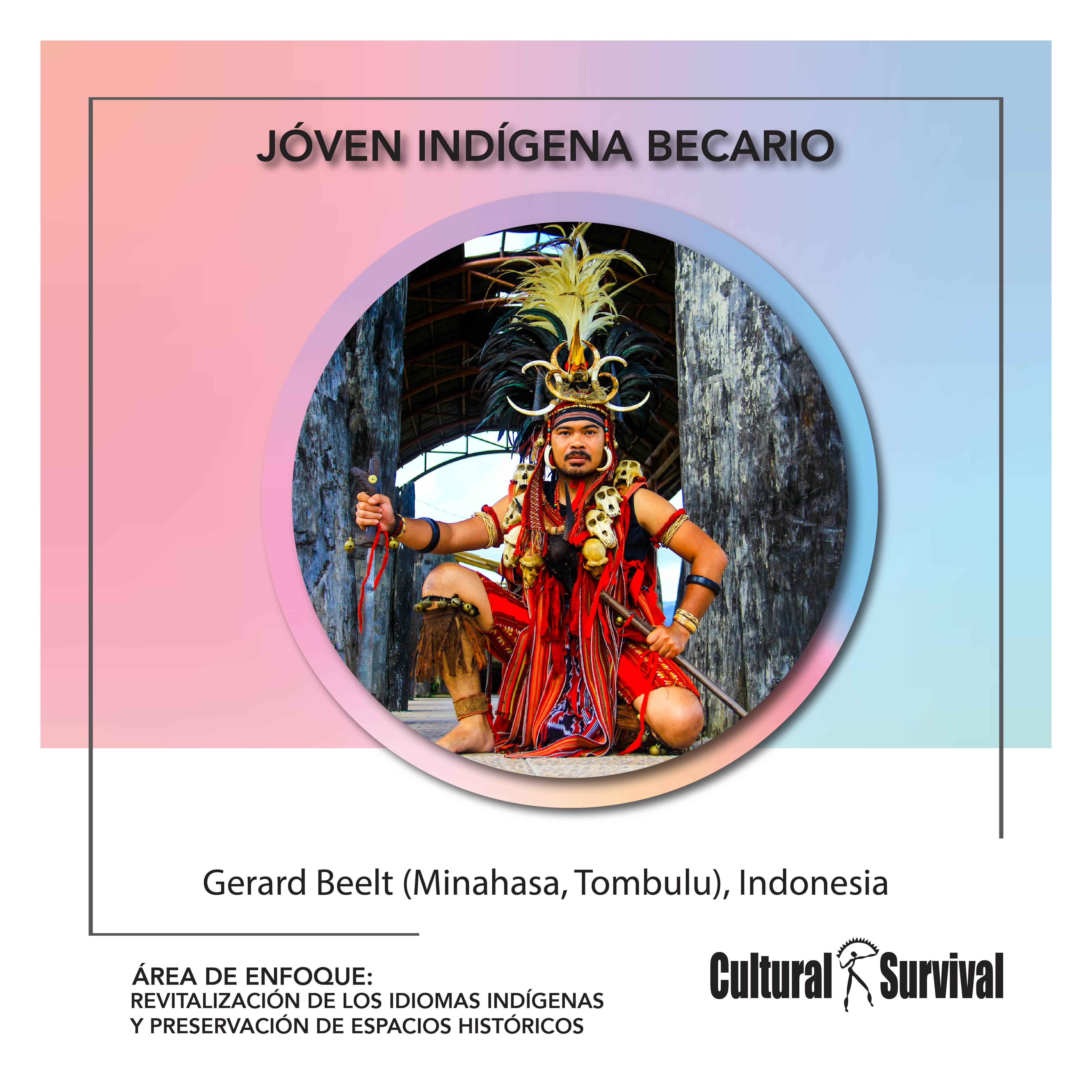 Gerard Beelt (Minahasa, Tombulu) es de la península de Minahasa en la provincia de Sulawesi del Norte, Indonesia. Se ha capacitado a nivel nacional e internacional para mejorar su conocimiento teórico y práctico, que culminó con su participación como joven Indígena en el Programa INSPIRASI de UnionAID de Nueva Zelanda y la Fundación BaKTI de Indonesia. También toma cursos de Ciencias Sociales y Políticas Públicas en la Universidad Tecnológica de Auckland.