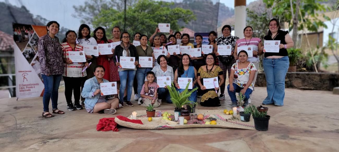 Miguel Ángel continuó conversando con las participantes, quienes coincidieron con él, en que la organización a través de asambleas comunitarias es fundamental para detener los proyectos extractivos y defender el territorio de los Pueblos Indígenas: “Las asambleas comunitarias tienen un poder gigantesco para decir SÍ o NO a los megaproyectos” agregó.