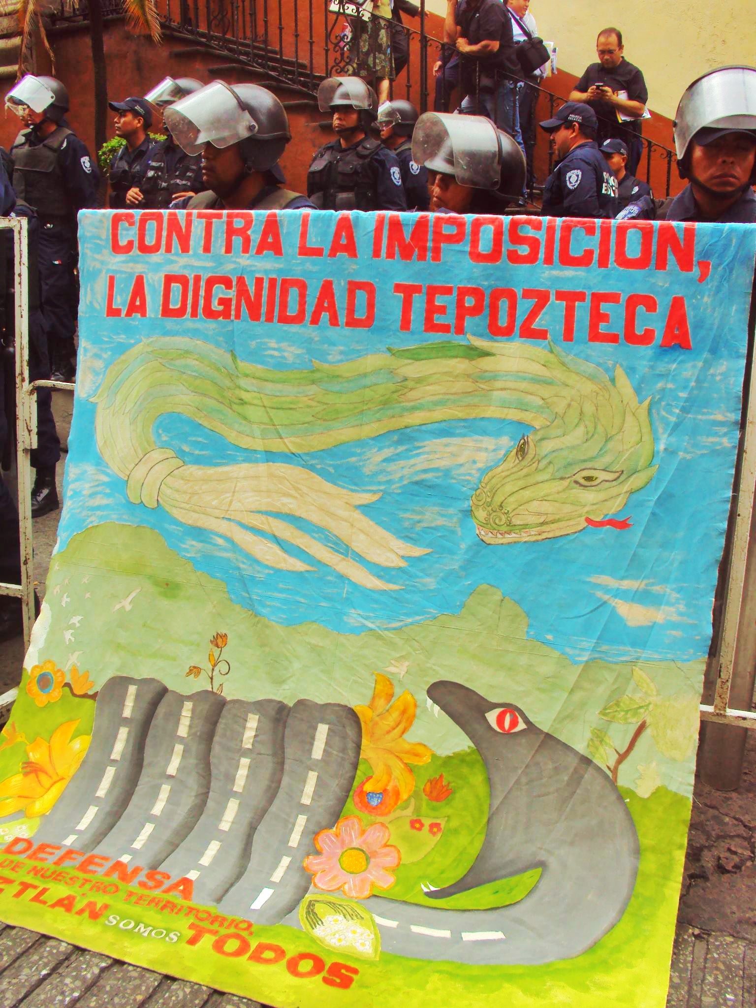 A partir del primero de septiembre de 2012, el pueblo de Tepoztlán se movilizó en la ciudad de Cuernavaca, Morelos para denunciar el arranque de las obras de la ampliación de la autopista La Pera-Cuautla, obra impulsada por el ex presidente de la república Felipe Calderón Hinojosa.