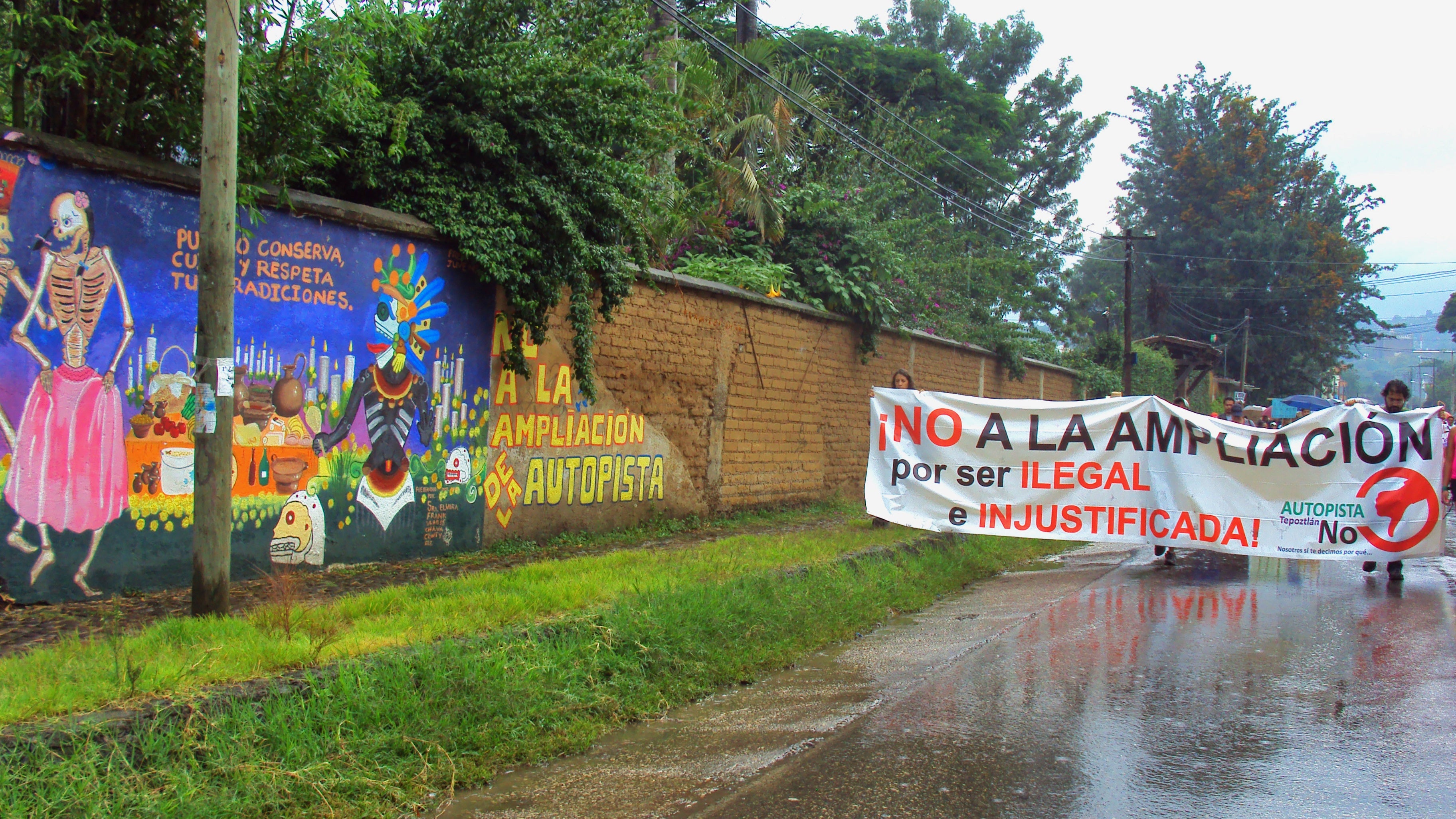 A nueve años de la aprobación del proyecto “Ampliación de la autopista La Pera-Cuautla”, la comunidad de Tepoztlán, Morelos, México sigue resistiendo aún cuando las obras han avanzado. Entre sus grandes triunfos se encuentran el conservar la zona arqueológica y el Amate Amarillo. Es una lucha digna y comprometida con la conservación del territorio, sus costumbres y tradiciones. A lo largo de estos años se han sumado a otros movimientos opositores a los megaproyectos como el Plan Integral Morelos que pretende echar a andar una termoeléctrica y un gasoducto. Se ha solidarizado con otros pueblos como Atenco y Xochicuautla en el Estado de México y ha caminado acompañando al Ejército Zapatista de Liberación Nacional (EZLN). La comunidad de Tepoztlán es un espacio de dignidad y de resistencia contra las injusticias, un espacio lleno de memoria histórica guardada entre cerros. Tepoztlán es un pueblo que no se marchita aunque respira un mar de injusticias. ¡Tepoztlán se ama, se cuida y se defiende!