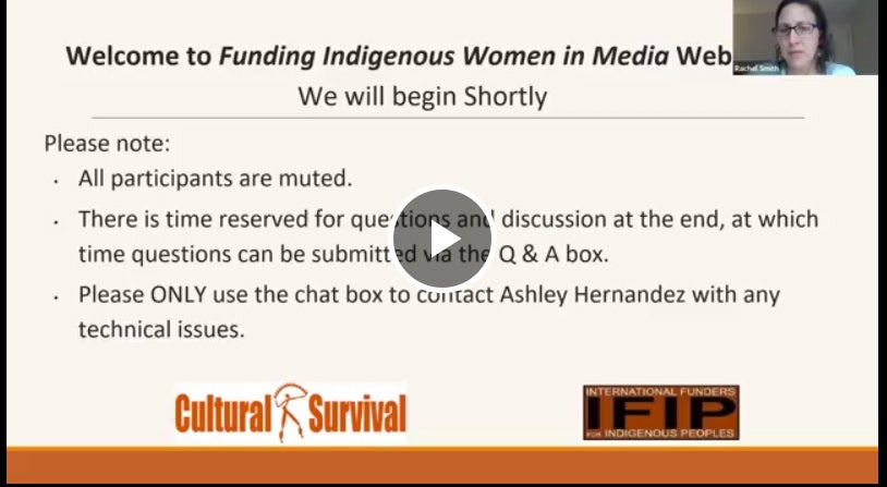 On March 18, 2020, Funding Indigenous Women in Media  webinar was co-hosted by Cultural Survival and International Funders for Indigenous Peoples. If you missed it, you can still be part of our rich discussion of how access to information technology can empower Indigenous women to combat harmful stereotypes, challenge abuse and violence, and express their own narratives of who they are as Indigenous Peoples.