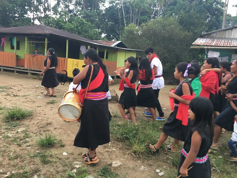The second initiative was a celebration and special commemoration for Atun Puncha, a big day for the Inga community. Everyone wore crowns of feathers, traditional clothing, and necklaces of beads and natural seeds, and thanked each other and the Earth for everything they have been provided. Together, the whole community ate traditional meals, danced and sang together, and commemorated loved ones who have passed away. The presence of the Inga language was strong, and especially because the day is a moment of cultural strength, resistance, and perseverance; one of the most popular phrases of the day is “kausankamalla,” which means “as long as you live.”