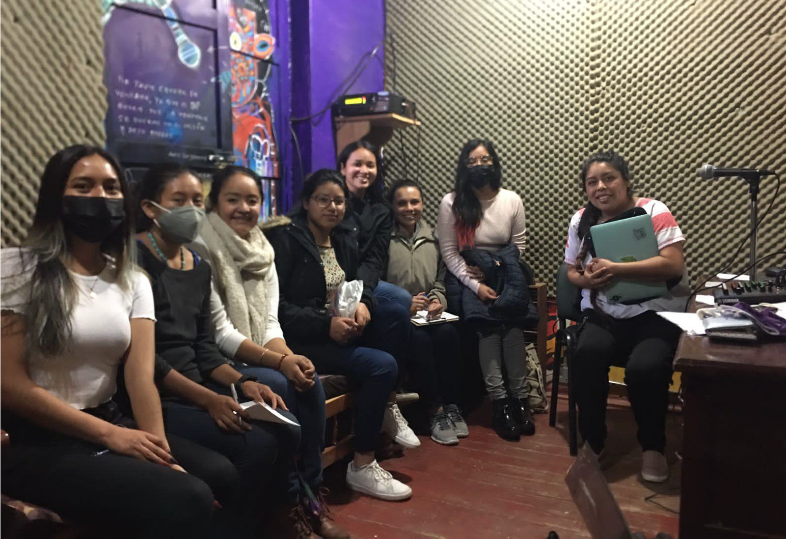 Mujeres P´urhépecha haciendo radio por la defensa de la vida y el territorio en Cherán