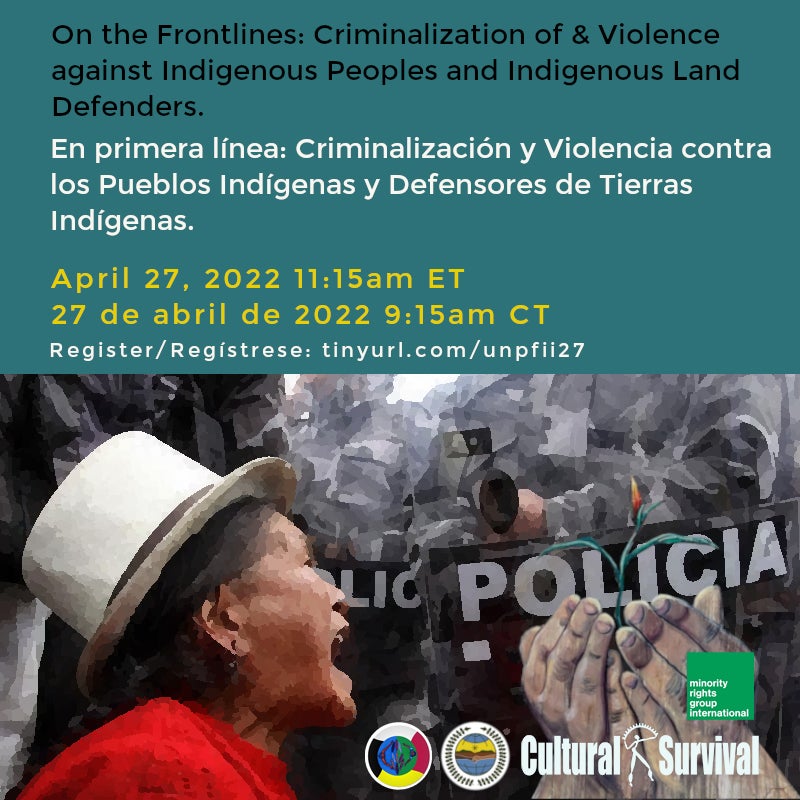 On the Frontlines: Criminalization of & Violence against Indigenous Peoples and Indigenous Land Defenders.