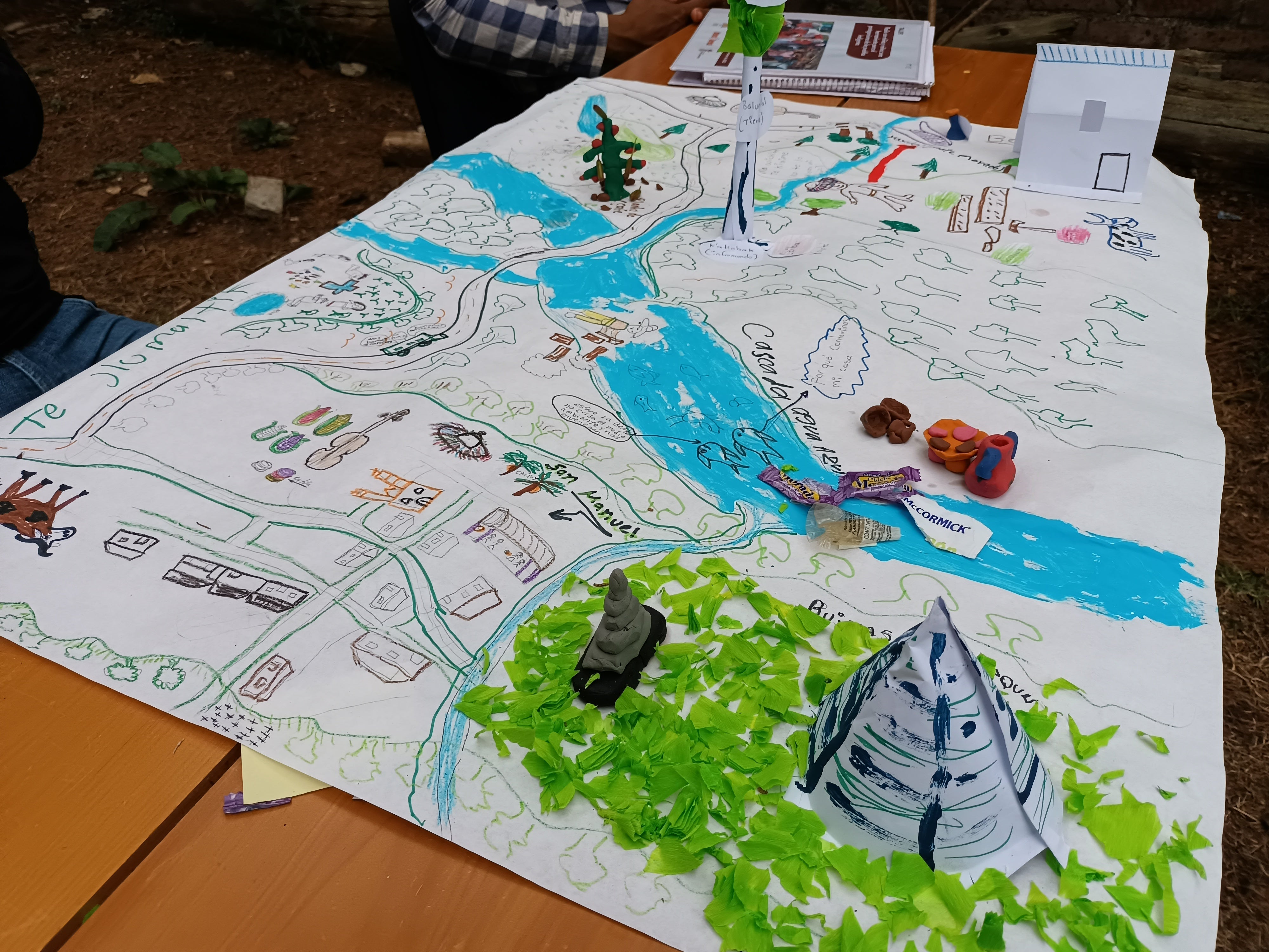 • The children can talk about their mountains, their territory. Give children the opportunity to describe what their territory is like. Redo the activity of the talking map so that they can draw and imagine in a guided way and answer the prompt, "Imagine that Ik is lost in a hill in your community." They know well what the hills in the community look like...they will know what to say to guide Ik home.