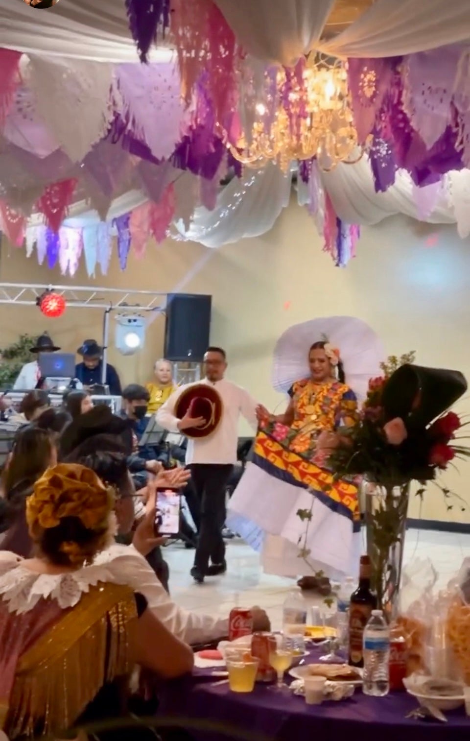 Maritza dancing at her birthday celebration in a Tehuana, a dress traditionally worn by Isthmus Zapotec women and Muxes.