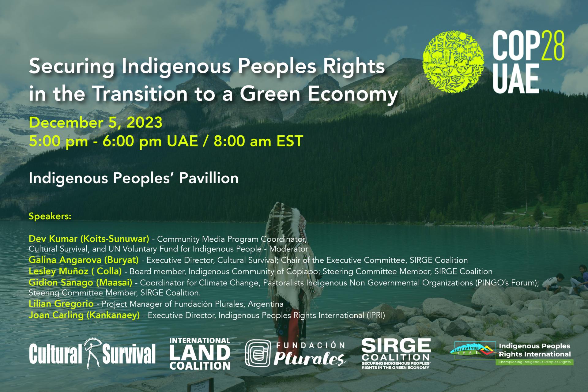 Co-hosted by: Cultural Survival, SIRGE Coalition, International Land Coalition, Indigenous Peoples Platform (IPRI), and Fundación Plurales.