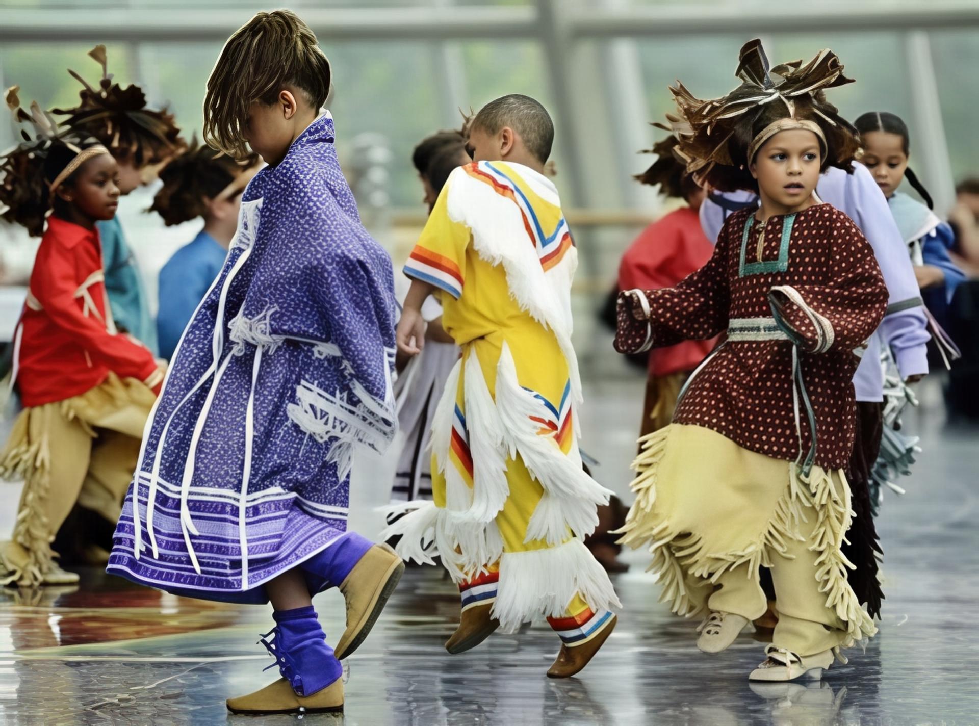 El grupo de danza Little Fox, formado por niños en edad preescolar del centro infantil de la comunidad Pequot.
