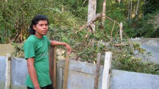 In 2006, another bird study began in KéköLdi, and my brother Keswar and I both participated from the beginning because we love birds and wanted to learn more about them. This is a monitoring program for smaller birds, some of them migratory and some of them local. The coordinator is Daniel Martínez, and I am now the deputy coordinator. We catch the birds in mist nets, put bands on them, record data about them, and then release them. We place the nets in places that have different ecological characteristics, like abandoned cocoa farms, managed forests, secondary-growth forests, forest edges, streams, and rivers, so we can make comparisons. At first, when we were just learning, between two and three percent of the captured birds died through our lack of experience, but now we have a zero percent death rate.