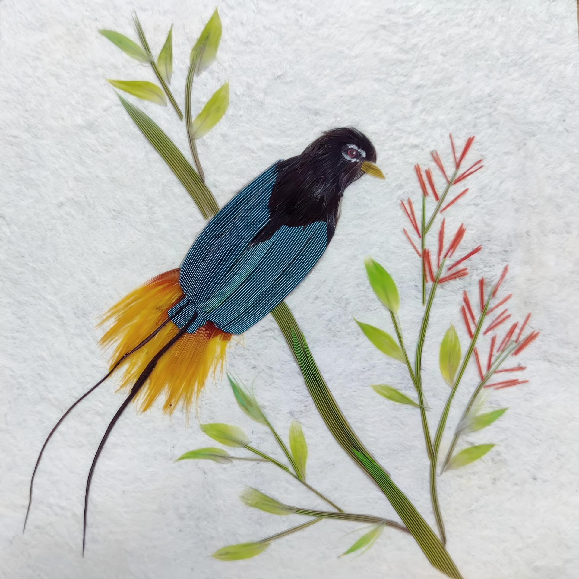 Jewelry made out of plumage by Arte Plumario Kozamalotl.
