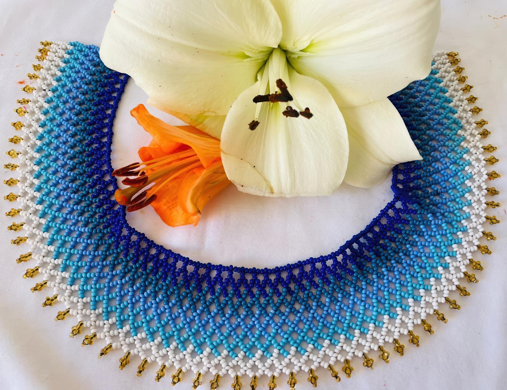María Violeta Medina Quisque y ejemplos de sus hermosos abalorios.