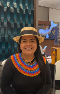 María Violeta Medina Quisque (Nasa) es un mosaico de luz. Desde sus orígenes como una niña en Pueblo Nasa hasta convertirse en líder de defensa de los derechos Indígenas, activista internacional por los derechos de las mujeres Indígenas y psicóloga certificada, desde el tiempo que pasa como tejedora textil en una comunidad interseccional Indígena hasta su apoyo al esfuerzo de cosecha de café liderado por Indígenas de CafeMediNasa, María atribuye sus variados logros a sus raíces Indígenas.