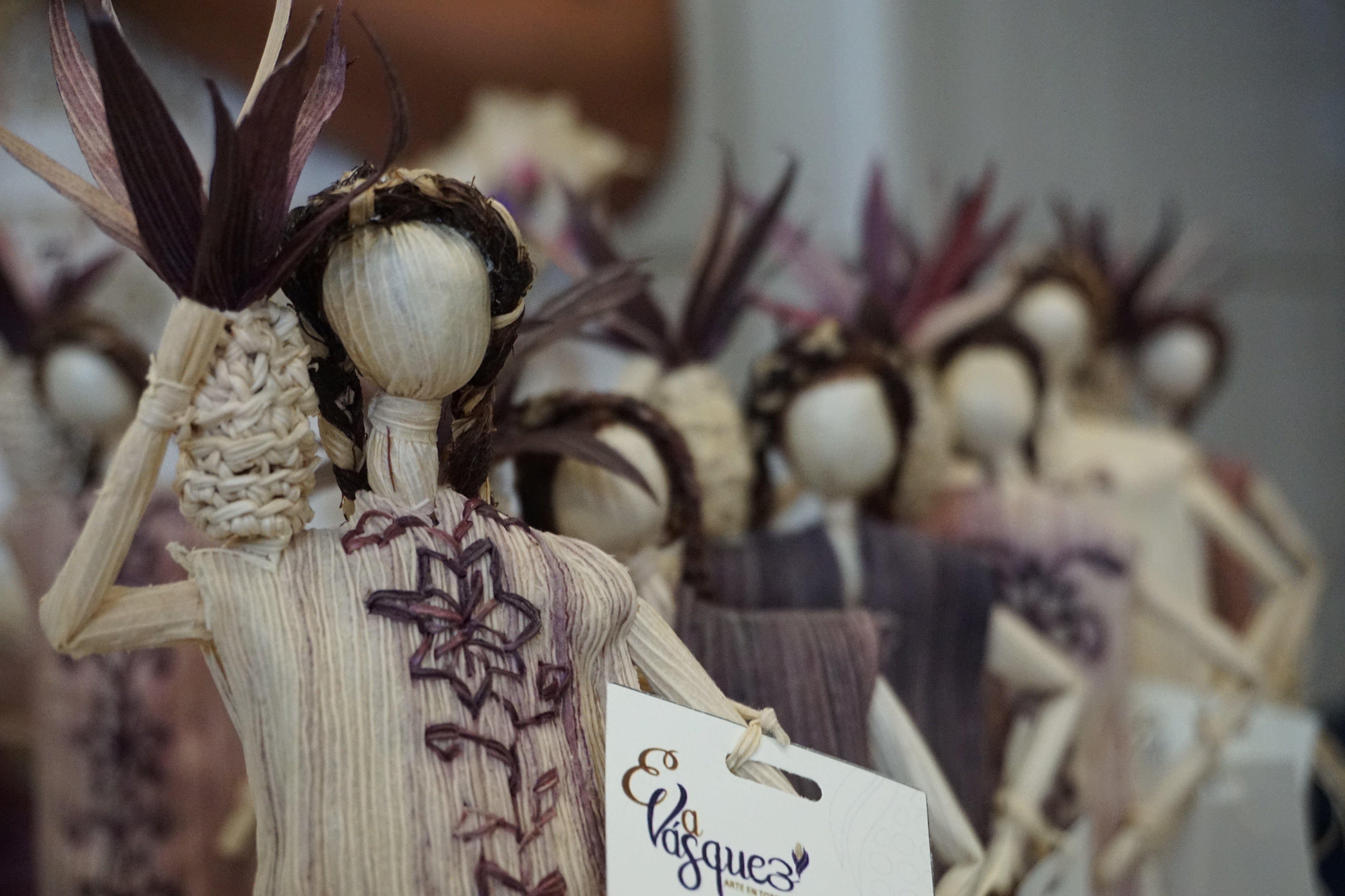Eva Vásquez Clemente es madre soltera de dos hijas, artista y oficial de policía auxiliar en la Secretaría de Seguridad Pública del Estado de Oaxaca en México. Proviene de la costa zapoteca-mixteca de Oaxaca. Vásquez elabora muñecas de hojas de maíz, exquisitamente detallados que representan a las bailarinas tradicionales del reconocido Festival Anual de la Guelaguetza, donde se reúnen los 16 Pueblos Indígenas de las 8 regiones del Estado de Oaxaca. Ella crea sus piezas íntegramente a mano con productos orgánicos y colores naturales.